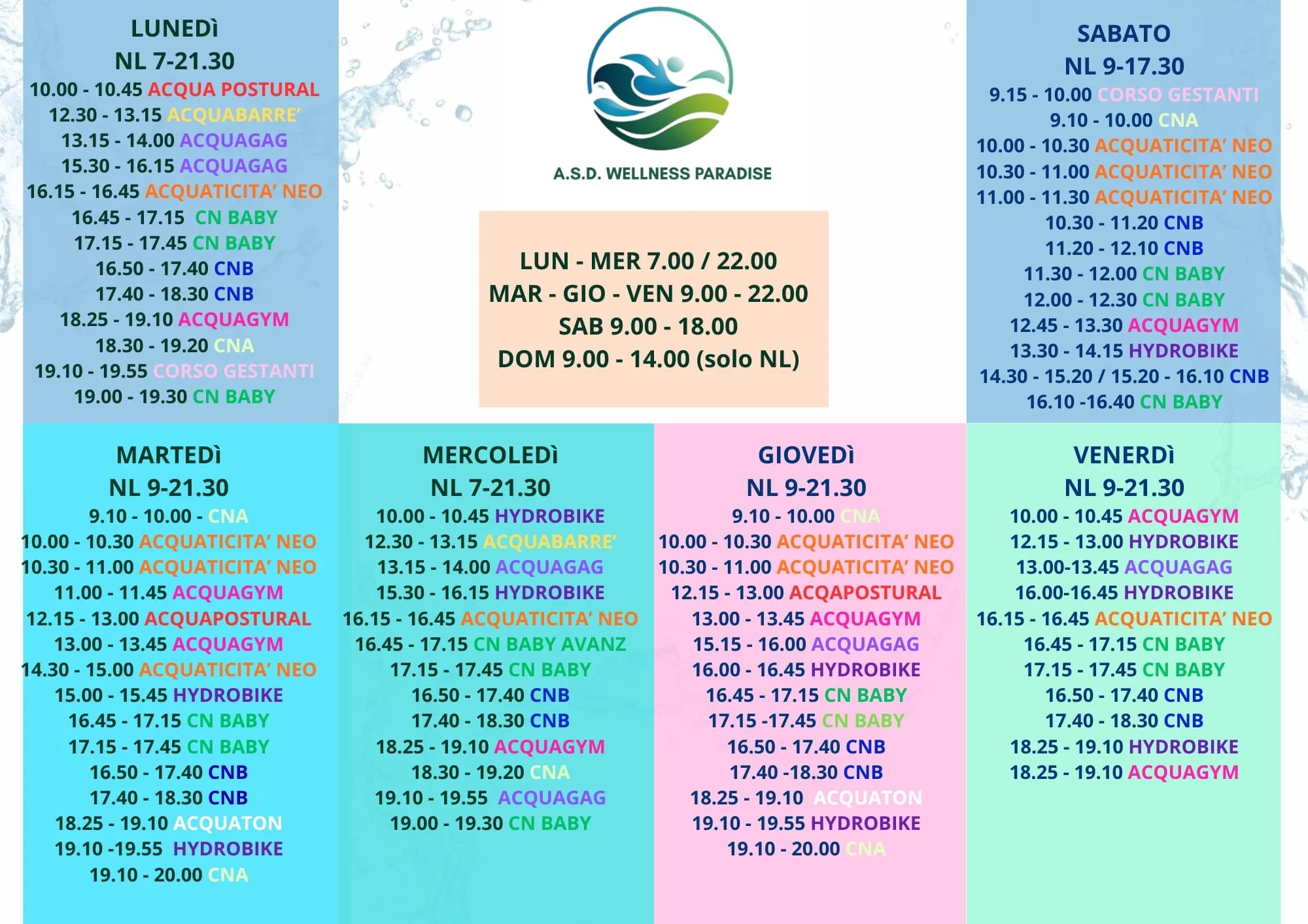 Nuoto libero: lunedì e mercoledi dalle 7 alle 21,30. Martedì, giovedì, venerdì: dalle 9 alle 21,30. Sabato dalle 9 alle 17,30