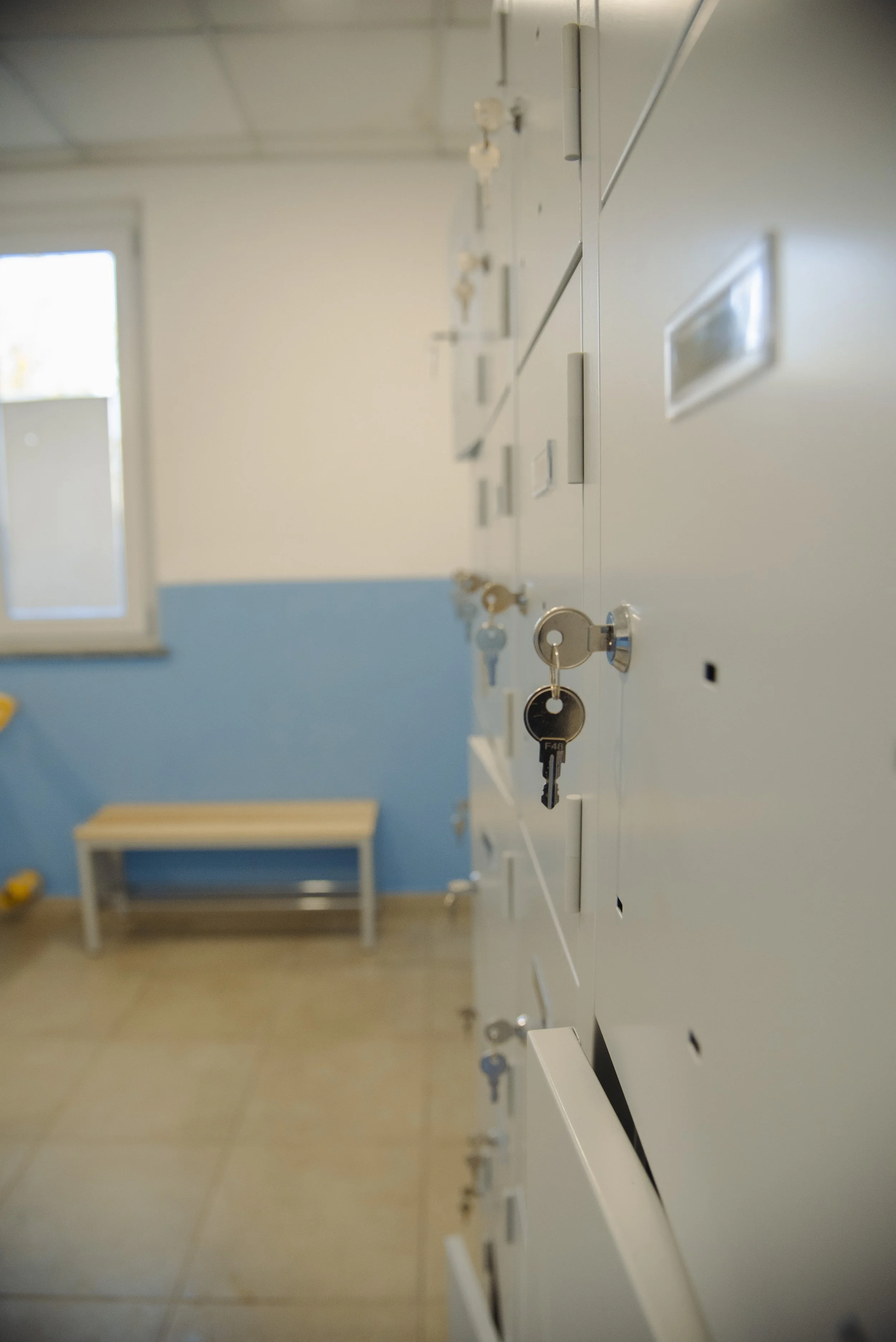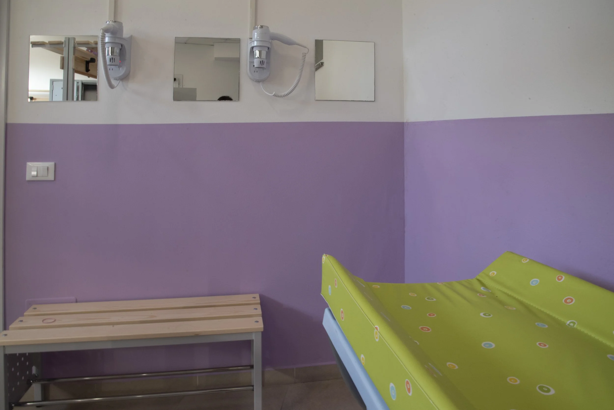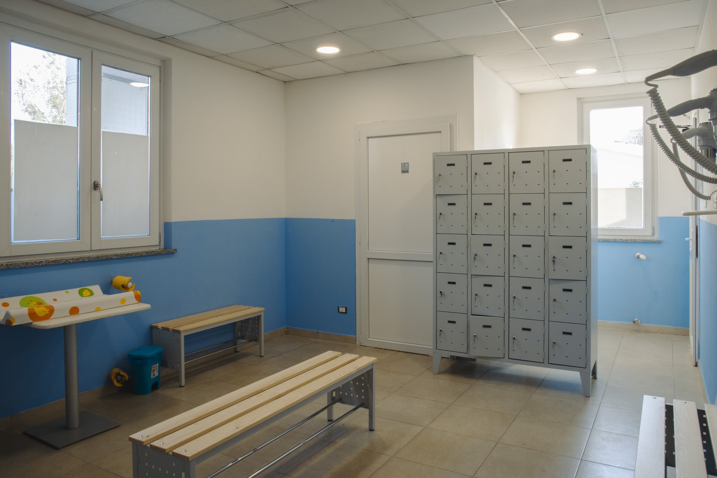 Spogliatoi con docce calde, phon, armadietti compresi di chiave, fasciatoio per bimbi